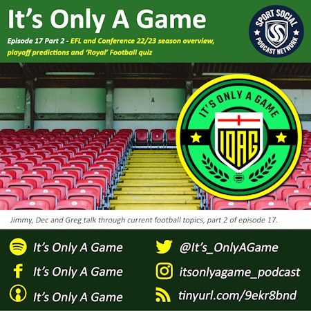 <p>Welcome to the second recording of It's Only A Game podcast. </p><p>Jimmy, Dec, Greg and Matt preview the 2022/2033 football season (Part 2). And Greg includes his 'fives' questions near the end. (Recorded during the July heatwave on Weds 20 July 2022).</p>