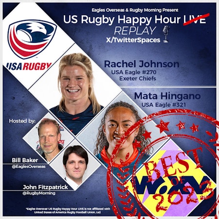 On this replay of Twitter Spaces' US Rugby Happy Hour LIVE, USA Eagles Rachel Johnson and Mata Hingano join Bill & John From Cape Town, South Africa to talk about the USA Women’s Eagles performance in the WXV, what does the latest World Rugby com...