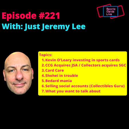 These are the audio tracks from Sports Cards Live (on YouTube). Host and lifelong collector Jeremy Lee is joined by passionate collectors, industry insiders, hobbypreneurs, content creators to educate, inform, entertain, and inspire hobbyists of all genres and experience. Sports Cards Live is an interactive livestream video podcast where you are part of the show as your comments and questions are in play.